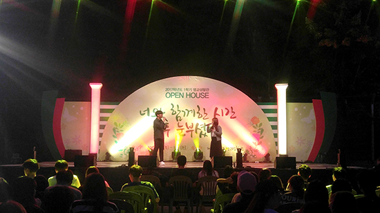 지난 10, 11일 명교생활관에서 오픈하우스가 개최됐다. 사진은 12일 명교생활관 믿음동 공터 앞에서 진행된 노래경연대회에서 학생들이 자신들의 노래 솜씨를 뽐내고 있는 모습.