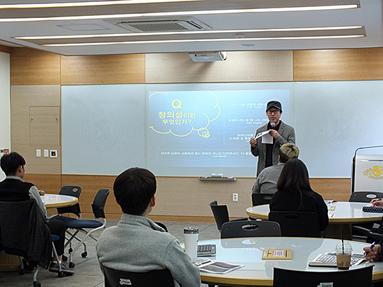 ‘창의적 문제해결 워크숍’이 지난 7일과 14일, 두 차례에 걸쳐 바우어관 액티브러닝 강의실에서 열렸다. 워크숍에서는 류진한(광고홍보학) 교수의 ‘아이디어 발상법’을 주제로 한 강의가 2회에 걸쳐 진행됐다. 류진한 교수는 “아이디어란 본래 있었던 것을 새로운 시각으로 발견하는 것”이라며 “창의적인 아이디어는 발상하는 것이 아니라 일상 속에서 발견하는 것이다.”라고 말했다.
