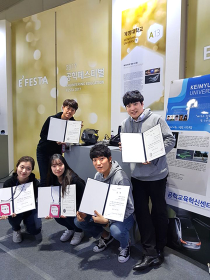 우리학교 ‘메카닉스’팀이 2017 창의적 종합설계 경진대회에서 한국산업기술진흥원장상(3등상)을 수상했다. ‘메카닉스’팀은 이승호(기계자동차공학·4), 하종성(기계자동차공학·4), 최민석(컴퓨터공학·3), 구예진(전자공학·4), 김나영(전자공학·3) 씨로 구성된 팀이다. 청각적으로 주의가 결핍된 운전자 및 보행자를 위한 ‘헤드라이트 경보시스템’으로 주목을 받은 그들을 만나 수상까지의 이야기를 들어보았다.