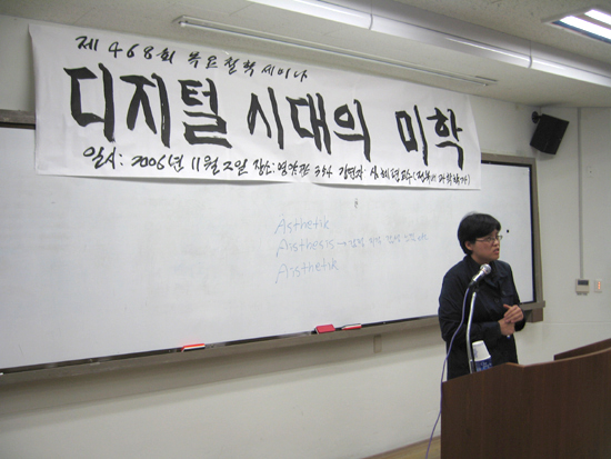 이날 강연을 맡은 심혜련(전북대 과학학ㆍ교수)교수는 디지털시대의 새로운 미학으로 ‘매체 미학’을 소개하고 매체의 변화가 예술에 미치는 영향에 대해서 강연 했다.