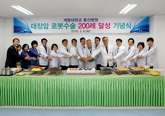 한편, 동산병원은 대장암 로봇수술 2백례 달성을 축하하는 기념식을 지난 6일 김권배(의학·교수) 동산병원장을 비롯한 대장암 수술팀 50여 명이 참석한 가운데 진행했다.