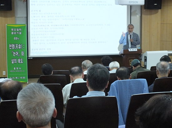 지난달 3일부터 31일까지 영암관 들메실에서 매주 목요일마다 진행된 ‘2018학년도 1학기 목요철학콜로키움’이 성황리에 마무리됐다. 다섯 번의 콜로키움은 ‘논어를 통해 공구와 공자를 읽다.’라는 주제로 철학과 교수들의 강연이 이어졌다. 마지막 콜로키움에서 강연을 맡은 홍원식(철학윤리학) 교수는 “논어를 통해 공구와 공자의 삶의 태도를 배우는 것은 우리 삶에 큰 도움을 줄 것이다.”라고 말했다.