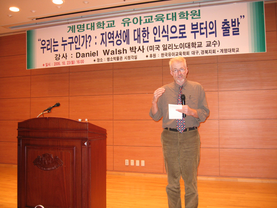 Daniel Walsh 박사는 바람직한 유아교육학의 방향과 올바른 교육방법을 제시하며 “누구나 쉽게 접근하고 이해할 수 있는 언어의 사용과 함께, 지역적인 것에 관심을 기울이는 것으로 교육과 연구의 질을 향상시킬 수 있다”고 주장했다.