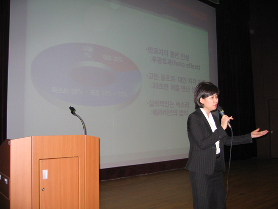이번에 진행된 2번째 ‘Study Skill up Program’은 ‘효과적인 발표 요령’이란 주제로 전명남(교육심리 및 상담·초빙전임강사)교수가 강연을 맡았다. 전명남 교수는 학생들의 효과적인 발표를 위해 발표자의 올바른 자세, 시선처리법, 반어법 사용, 초반 5분에 핵심메세지 전달 등의 발표 방법을 소개하며 강연을 진행했다.