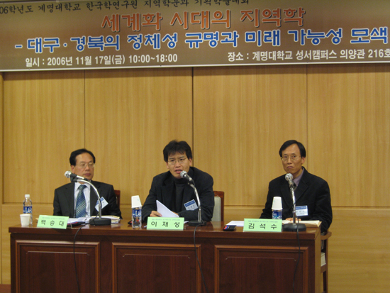 한국학연구원 주관 지역학분과 기획학술대회가 ‘세계화시대의 지역학, 대구·경북의 정체성 규명과 미래 가능성 모색’이라는 주제로 11월 17일 10시 의양관 216호에서 열렸다.