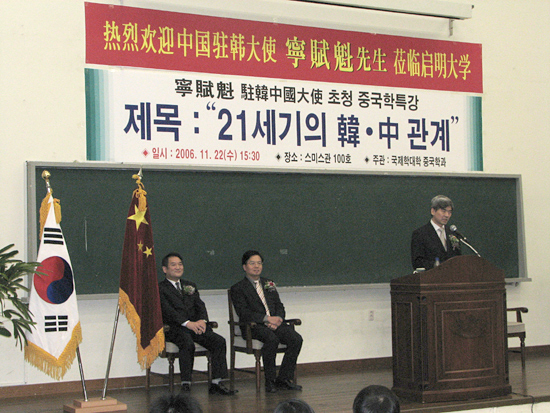 지난 11월 22일 국제학대학 중국학과 주관의 명사초청 특강에 녕 부괴(寧賦魁) 주한중국대사가 최근 논란이 되고 있는 사항들에 대한 중국 측의 입장을 밝혔다.