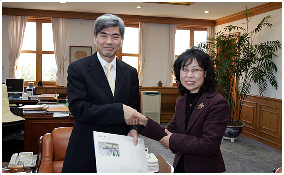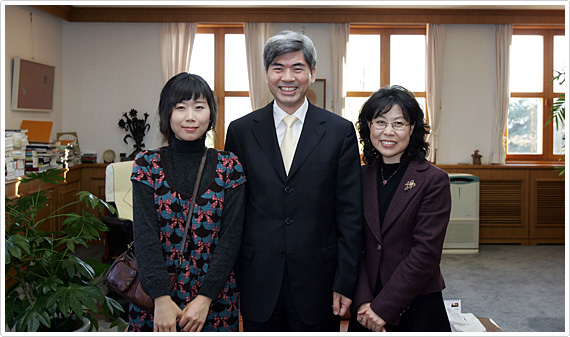 올초에는 딸 이예진(애니메이션과 1년)씨도 우리대학에 합격해 모녀대학생으로 주위의 부러움을 사기도 한 김명희씨. 만학도의 생활이 바쁘지 않느냐는 질문에 “캠퍼스 생활이 시작되면서 오히려 창작에 대한 열정이 더욱 높아졌다”며 “아르바이트를 병행하며 학업에 임하는 어린 학생들을 보며 오히려 많이 배웠고 그런 밝고 적극적인 모습의 학생들을 위해 뭔가 해줄 것이 없을까 하며 늘 생각해왔다”며 장학금 전달 소감을 밝혔다.