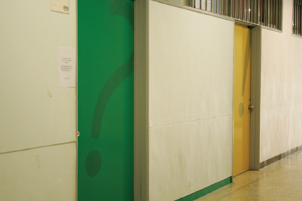 지난해 우리대학은 시범적으로 성서 캠 4곳과 대명 캠 4곳에 녹색, 청색, 황색, 갈색계열 등 4종류의 색상으로 강의실 도색작업을 시행했고 앞문과 뒷문에 기호 ‘!’, ‘?’를 새겼다.