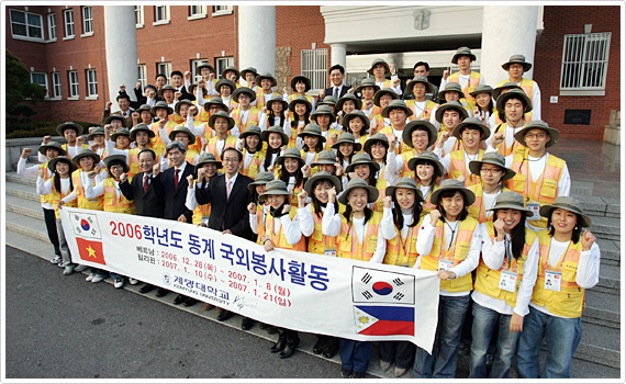 불우한 처지에 있는 제 3세계지역 환경봉사를 위해 지난 2002년 결성된 우리대학 국외봉사활동단이 12월 22일(금) 오후 4시 본관 앞에 모여 제15, 16차 해외환경봉사를 위한 발대식을 갖고 지난 28일 봉사활동을 위해 출국했다.