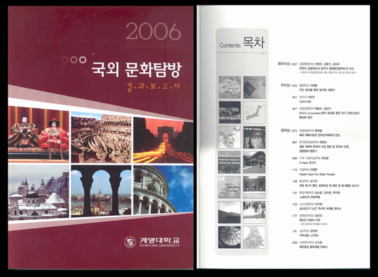 ‘2006 국외문화탐방 결과보고서’는 우리대학에서 해마다 실시하는 해외문화탐방 프로그램에 참여한 100여명의 학생들이 현지에서 보고 듣고 느낀 이야기들 중 우수작 14편을 선정해 처음으로 펴낸 책.
