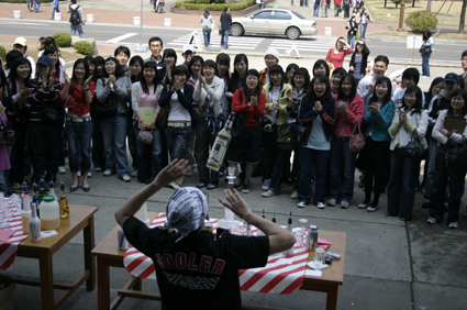 칵테일 쇼를 보는 신입생들의 표정이 그 맛을 무척이나 궁금해 하는 것처럼 보인다.