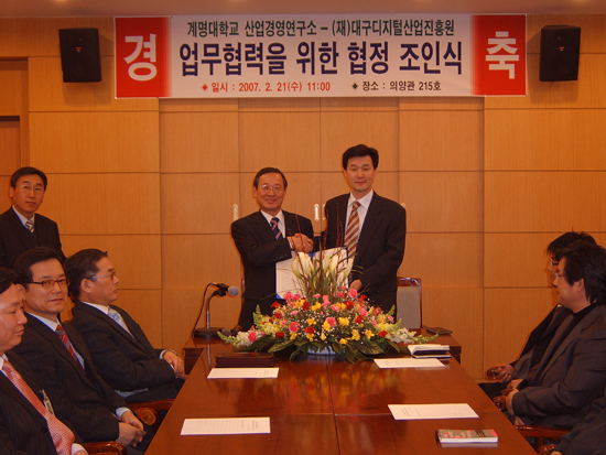 지난 2월 21일 의양관 215호에서 산업경영연구소와 (재)대구디지털산업진흥원과의 교류협정이 체결됐다.