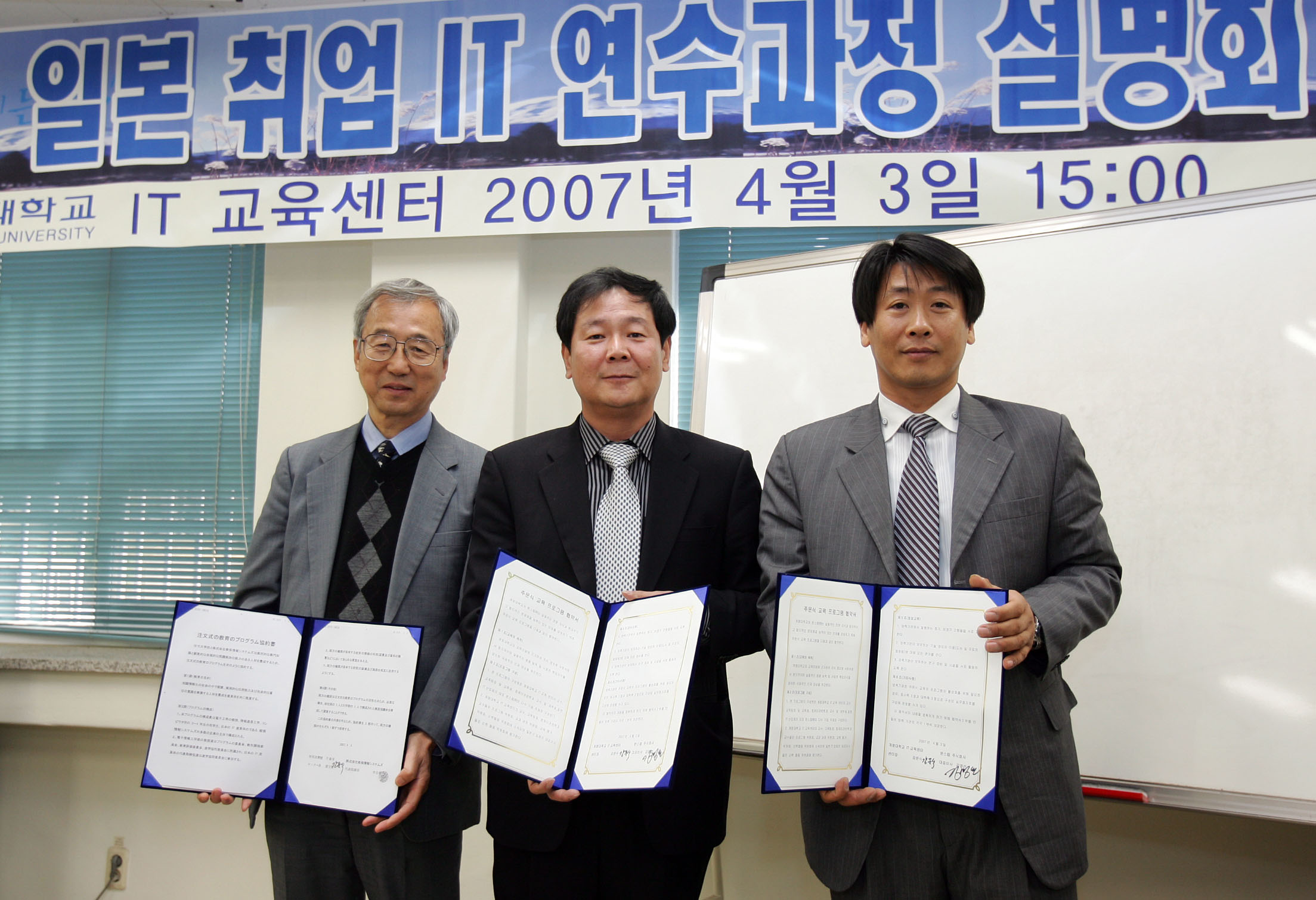 우리대학 IT교육센터는 지난 3일 일본 현지의 IT회사인 (주)교보정보시스템즈 및 (주)윈스텝과 협정을 체결했다.