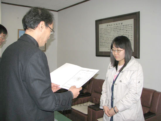 지난 6일 학생처장실에서 명예장학증서 수여식이 열렸다.