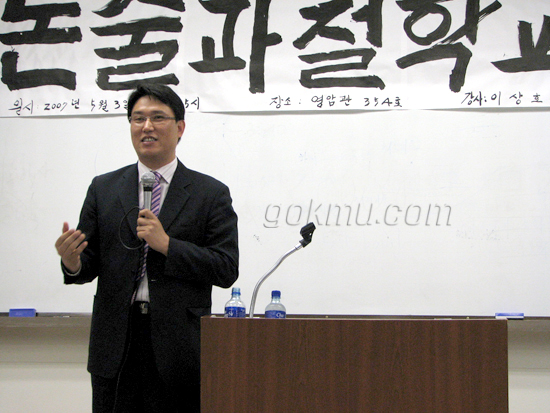 이날 강연을 맡은 이상호(교양과정부·초빙전임강사)교수는 논술 기출문제에 제시된 주제들을 중심으로 ‘통합 교과형 논술 분석’, ‘철학과 논술고사의 관련성’ 등에 대해 설명했다. 또한 근원적인 논증을 개별적으로 이끌어 내거나 개별적인 논증을 근원적으로 이끌어 내는 방법으로 철학적 사고 능력을 꼽았다.