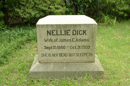 안의와 선교사의 부인 넬리 딕 아담스(Nellie Dick Adams, 1866-1909)은 1909년 10월 31일 4번째 자녀 출산 후유증으로 43세를 일기로 한창 젊은 나이에 먼 이국땅에서 순교했다. 그녀의 묘지는 현재 동산의료원 선교박물관 경내 잔디밭에 안장되어 있다. 남달리 한국을 사랑했던 그녀는 선교기지내에 유년 주일 학교, 부인 주일학교, 부인 사경회 등을 운영하며 남편의 선교사역을 도왔다. ‘넬리 딕’의 장례식은 한국여성들의 애도 물결로 줄을 이었다고 한다. ‘넬리 딕’의 묘비명에는 ‘그녀는 죽지 않고 잠들어 있다(She Is Not Dead But Sleepeth)’로 쓰여 있다.