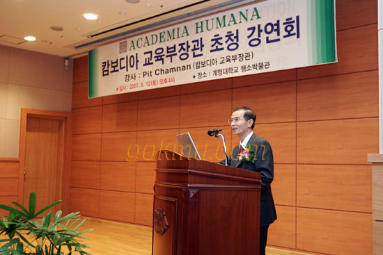 지난 12일 행소박물관 시청각실에서 아카데미아 후마나가 주최한 캄보디아 교육부 장관 H.E. Pit Chamnan 초청 강연회가 열렸다.