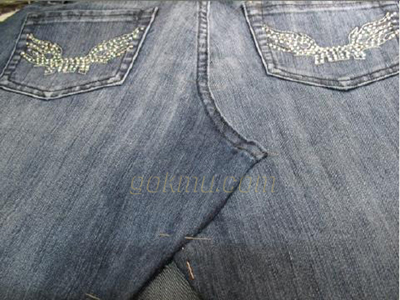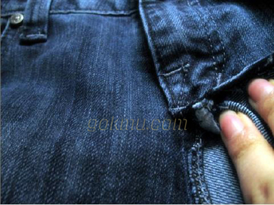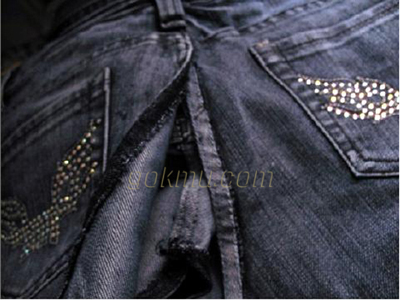 찢고 싶은 부위를 연필로 체크한 후 칼로 여러 번 그은 다음 자연스러운 느낌이 나도록 손빨래 하듯이 마주잡고 비비는 동작을 반복한다. 그런 다음 락스를 칫솔에 묻혀 찢은 주변을 문질러 주면 탈색되어 자연스러운 컬러가 연출된다. 평범한 뒷모습에 개성을 싣고 싶다면 엉덩이 아래 부분을 화끈하게 찢어도 좋다.