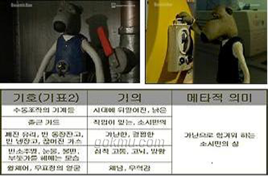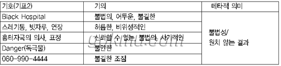 뮤직비디오 ‘불면증’의 또 다른 의미정보인 비주얼 이미지의 분석을 위해 이 글은 소쉬르의 ‘기표 vs 기의’ 개념을 확장하여 이미지 분석 도구로 응용한 바르트의 신화읽기를 적용하고자 한다. 위의 표들은 뮤직비디오의 주요 이미지인 ‘볼 마우스’와 ‘광 마우스’ 그리고 ‘병원’의 이미지가 창출하는 의미를 정리한 것이다. 결국 뮤직비디오의 주요 대립 이미지인 볼 마우스와 광 마우스의 통합적 의미 가치는 ‘불행 vs 행복’의 대립 가치로 추론될 수 있다.