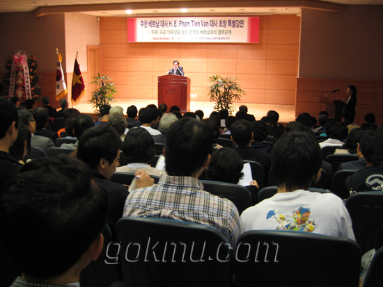 먼저 6일에 신일희 이사장, 이진우 총장, 양우철 전 제주의회 의장을 비롯한 한국·베트남 협회 관계자 등 300여 명이 모인 가운데 팜 티엔 반 대사가 ‘수교 15주년을 맞는 한국과 베트남과의 협력 관계’라는 주제로 특강을 열었다.