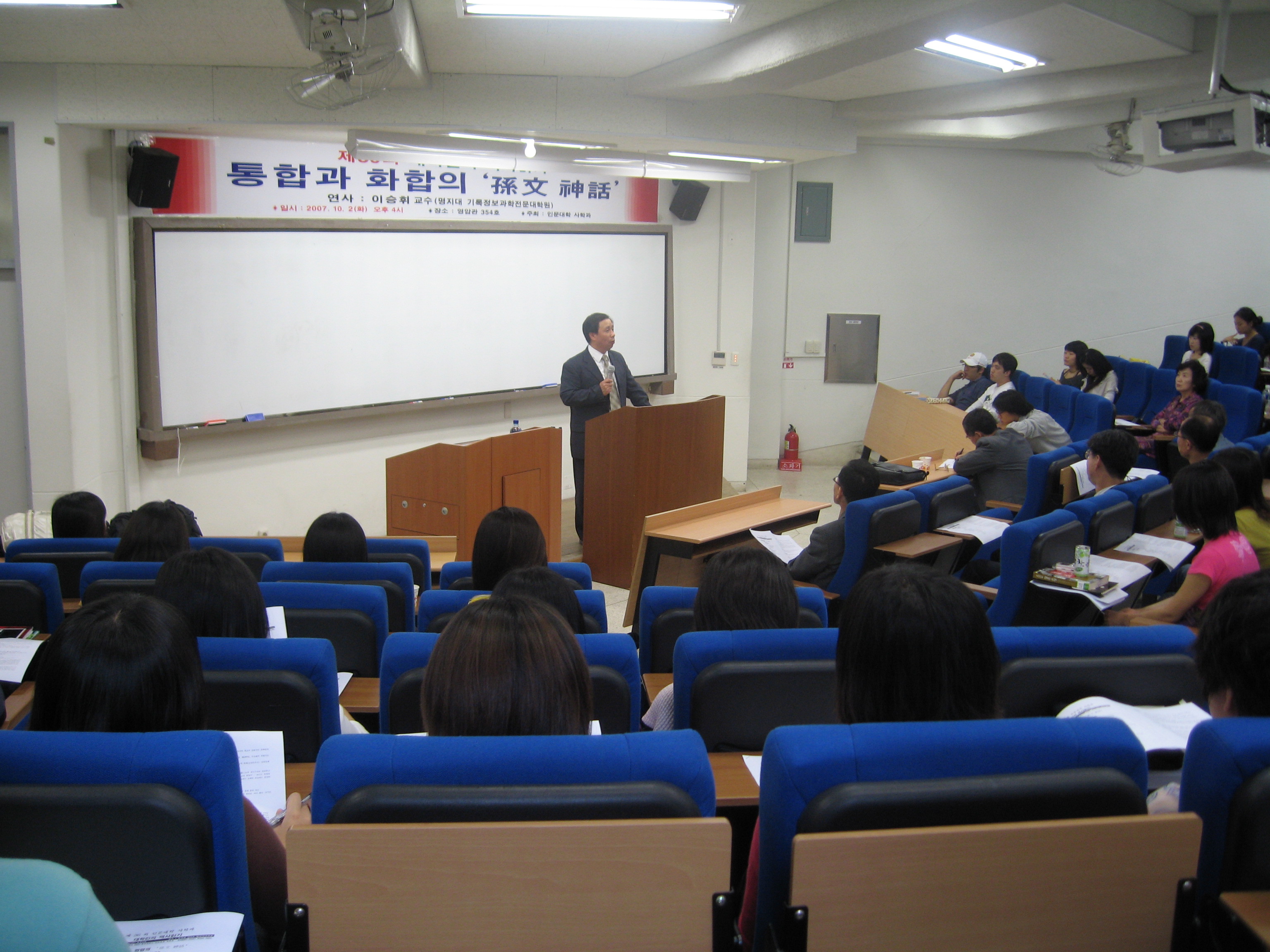 행사를 진행한 강판권(사학·조교수)사학과장은 “손문은 국민당과 공산당의 연합인 국공합작을 이끌어 통합과 화합의 지도자로 잘 알려져 있어 제17대 대통령 선거와 관련해 계획한 이번 학기 대학인의 역사읽기와 잘 맞는 것 같아 강연회의 주제로 선정하게 되었다”고 말했다.