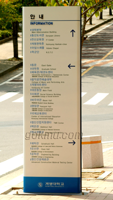 지난 8일 학교를 찾는 외부인들과 계명인에게 도움을 주고자 동문과 정문에 캠퍼스 종합 안내도를 비롯한 교내 안내 게시판을 설치했다. 현재는 교차로 안내판은 내용보완을 위해 철거한 상태이며 10월 말까지 재설치할 예정이다.