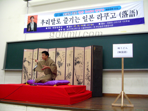 지난 16일 일본어문학과와 일본학과가 공동 주최한 ‘우리말로 즐기는 일본 라쿠고 공연’이 스미스관 100호에서 열렸다. 일본의 차세대 만담가 쇼후쿠테이 긴페이씨를 초청해 열린 이번 행사는 일본 문화와 일본어 습득에 도움을 주고자 한국어와 일본어로 나눠 진행했다.
