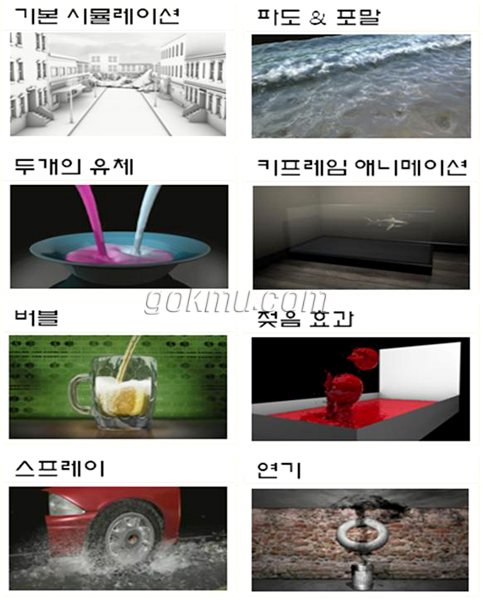 이처럼 실제보다도 더 현실 같이 느껴지는 특수 효과들은 컴퓨터 그래픽스, 그 중에서도 유체 시뮬레이션 기술을 통해 만들어 낸 가상의 장면들이다.