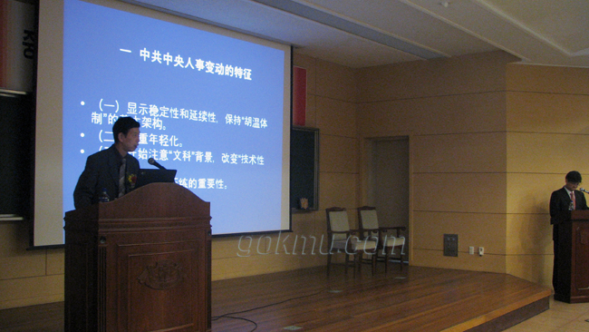 연사를 맡은 중국사회과학원 정치학연구소의 쓰웨민(史衛民)교수는 “새로 출범한 후진타오 제 2기 정책 기조는 제 1기와 크게 다르지 않을 것”이라며 해결과제로 통제형 정부에서 서비스형 정부로의 전환 문제를 언급했다.