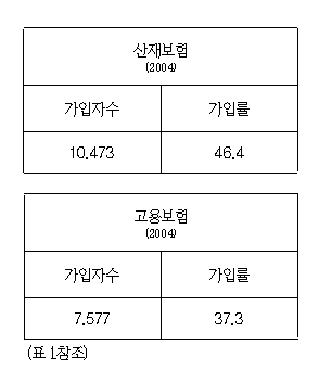 둘째, 광범위한 사회보험의 사각지대 문제를 해소해야 한다. 사회보험제도의 적용대상이 확대되었다고는 하지만 사회적 위험이 높은 비정규직 등을 중심으로 여전히 사회보험의 사각지대가 존재하고 있다(표 1). 넓은 사각지대는 보험가입자와 보험미가입자 간의 실질 소득격차를 발생시켜 사회보험 가입 회피를 초래할 뿐만 아니라, 사회 구성원들의 사회적 위험을 분산시키고, 연대를 통해 사회비용을 최소화한다는 사회보험의 근본적 기능에 대한 불신을 야기한다.