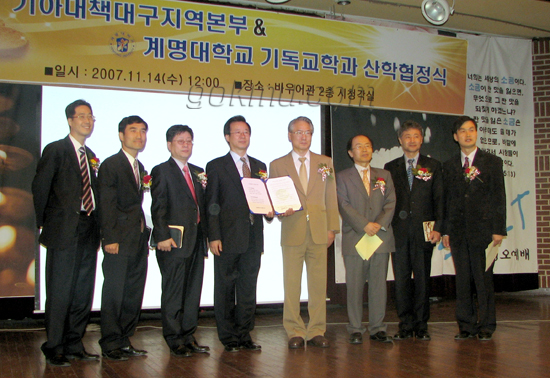지난 14일 기아대책 대구지역본부와 우리대학 기독교학과의 산학협정식이 바우어관 시청각실에서 열렸다. 기독교학과는 이번 협정으로 국내외 선교 활동을 펼치고 있는 기아대책본부를 통한 활동 영역 확장을 기대하고 있다.
