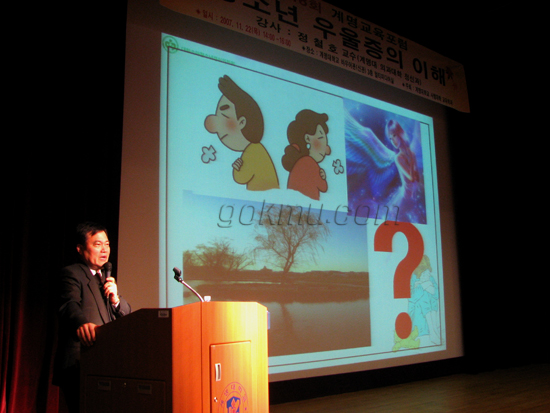 지난 11월 22일 계명교육포럼이 ‘청소년 우울증의 이해’라는 주제로 바우어관 별관 멀티미디어실에서 열렸다. 강의를 맡은 정철호(의학·교수)교수는 청소년 우울증에 대해 설명하며 “우울증은 사회경제적 수준과는 별개다”고 말했다. 또한 “청소년 우울증은 성인 우울증에 비해 반항적이고 적대적인 행동으로 표출될 가능성이 높다”고 말했다.