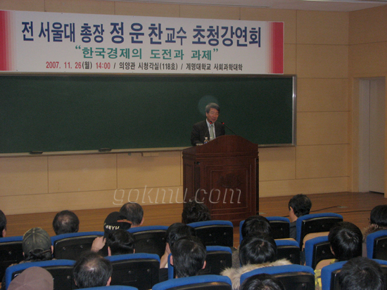 지난 11월 26일 서울대학교 정운찬(경제학부·교수)교수가 초청돼 ‘한국 경제의 도전과 과제’라는 주제로 강연했다.