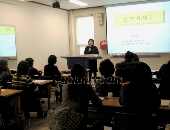 인 · 적성 검사, 김영문(경영정보학 · 교수)교수의 ‘여성 창업과 홀로서기’, 김경숙 경영컨설턴트의 '창업 이야기', 에듀잡 안교원 대표의 ‘성공 취업을 위한 서류작성법’ 등의 강연으로 진행된 이번 프로그램에는 약 20명의 대구 · 경북 여성들이 참여했다.