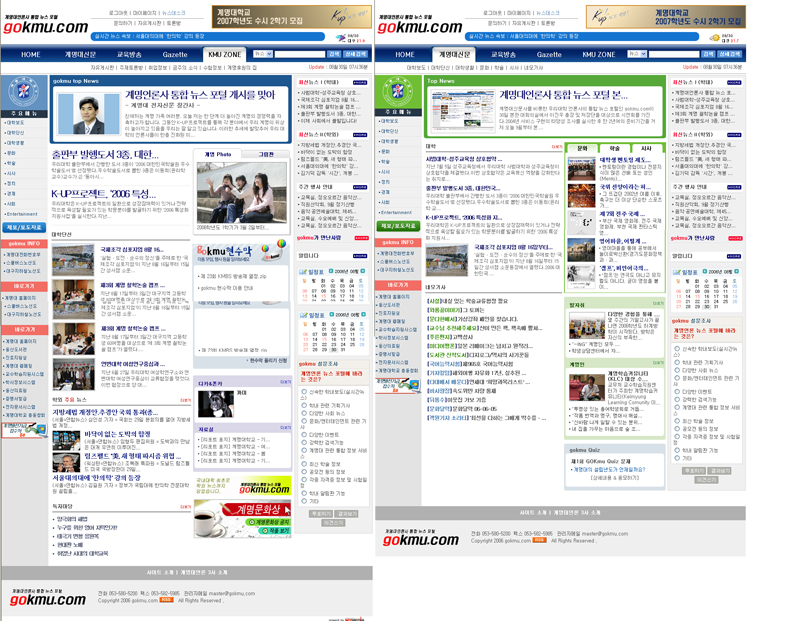 지난 2004년 서비스 구현의 타당성 조사를 실시한 후 2년여의 준비기간을 거쳐 이번 학기 개강에 맞추어 완성이 된 gokmu.com은 앞으로 우리대학의 대외 인지도 상승과 학내외 각종 정보의 신속한 처리 등 긍정적 기능을 발휘할 것으로 기대된다.