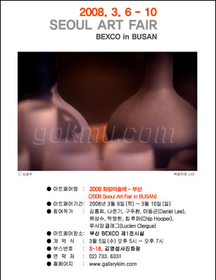 오는 6일 부산 BEXCO 제 1전시장에서 ‘2008 화랑미술제(2008 Seoul Art Fair)’가 열린다. 1979년에 시작된 국내 최초의 Art fair인 화랑미술제는 한국 화랑 협회의 86개 회원화랑이 참가하며, 화랑마다 독립된 전시공간에서 작가를 선정·초대하여 작품을 선보이는 종합미술 박람회이다.
