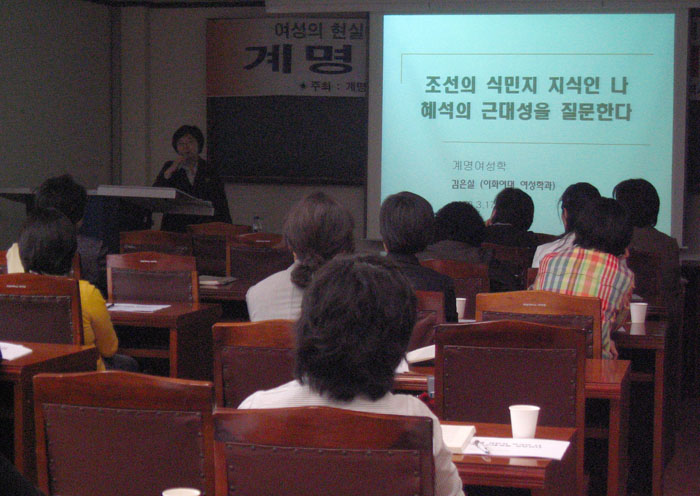 이번 세미나에는 김은실(이화여대·여성학·부교수)교수가 초청돼 ‘조선의 식민지 지식인 나혜석의 근대성을 질문한다’라는 주제로 발표했다. 김은실 교수는 “지금까지는 우리나라에 허난설헌이 있었고, 나혜석이 있었다고 그들의 존재에 대해 가르치기만 했다”며 “이제는 그 존재에 대해 알기만 하는 것이 아니라 질문을 가져야 할 때이다”라고 말했다.