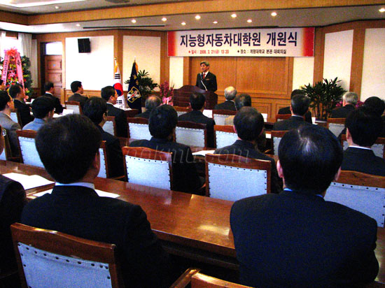 우리대학에 국내 최초로 지능형자동차대학원이 설립돼 지난 21일 본관 대회의실에서 개원식을 가졌다. 개원식에 참가한 이진우 총장은 “지능형자동차대학원 학생들이 우리나라 산업을 이끌어가는 중추적인 역할을 하길 바란다”고 말했다.
