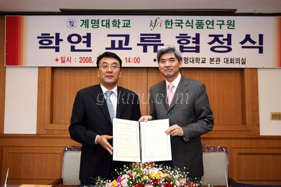 지난 25일 TMR센터와 한국식품연구원의 ‘학연 교류 협정식’이 본관 대회의실에서 열렸다. 이날 협정식은 폭넓은 연구기회를 제공하기 위한 것으로 우리대학은 위 연구원과 석·박사과정 및 연구 상호교류 등의 활동을 하게 된다.
