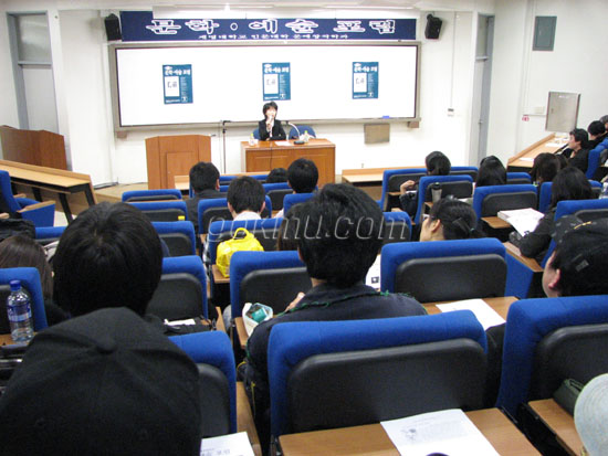 지난 26일 제 52회 문학·예술포럼이 ‘두 개의 질문’이란 주제로 영암관 354호에서 열렸다. ‘사람을 믿다’ 등을 집필한 권여선 작가는 ‘왜 소설을 쓰게 되었는가’와 ‘소설을 어떻게 쓰는가’로 나눠 강연을 진행했다.