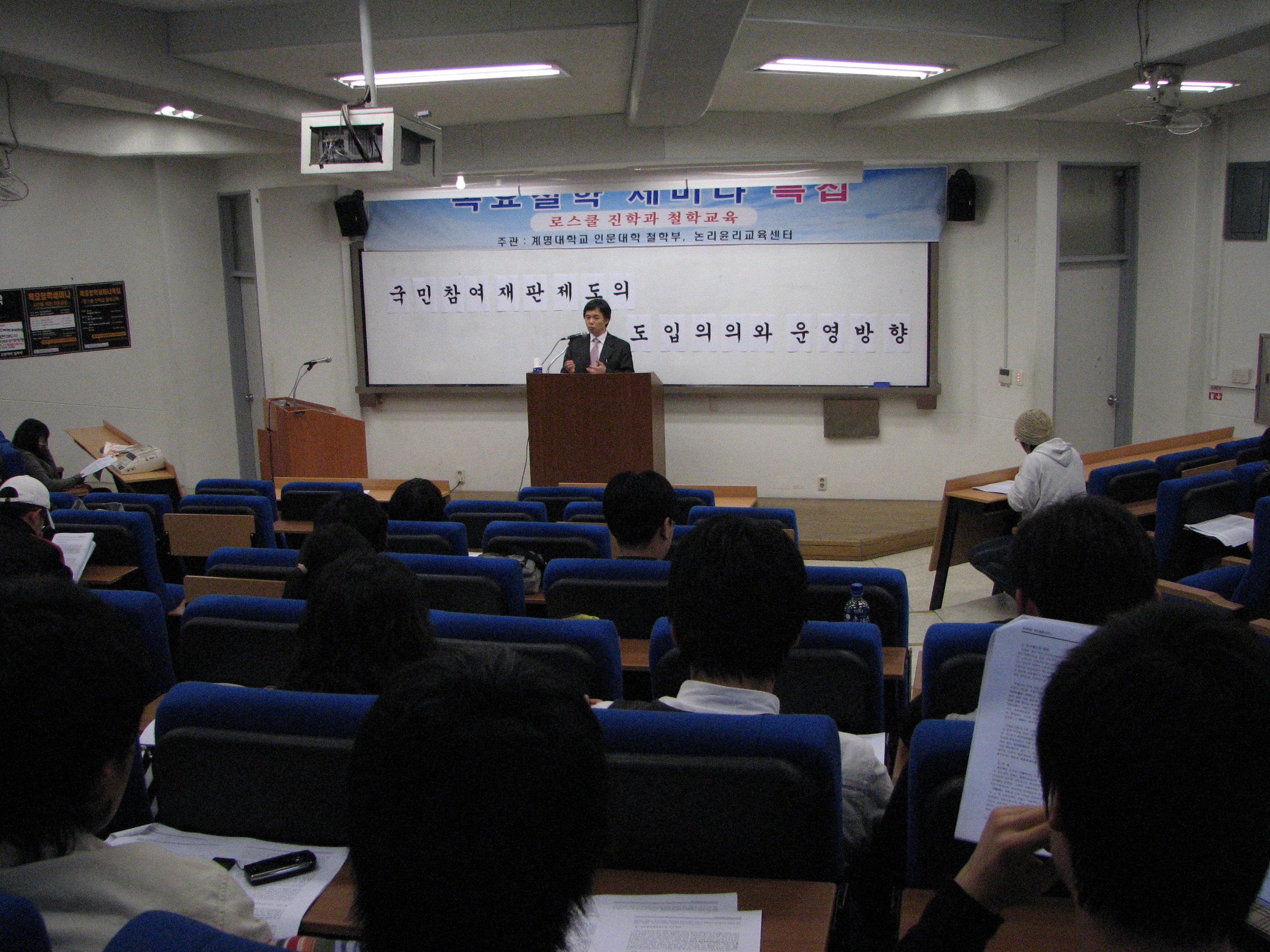 이 날 강연을 맡은 김종덕(법학부·부교수)교수는 우리나라 3권(입법부, 사법부, 행정부) 중 사법권은 이제까지 일반 시민이 아닌 시험을 통해 통과한 별도의 사람을 통해 그들만의 권리로 평가받아 왔다며 시민 참여로 공정한 사법권이 행사되어야 함을 강조했다. 또한 국민참여 재판제도의 장·단점과 그 중요성에 대해 논하며 재판권이 정치권력으로부터 분리되는데에는 시민들의 참여가 필요함을 주장했다.