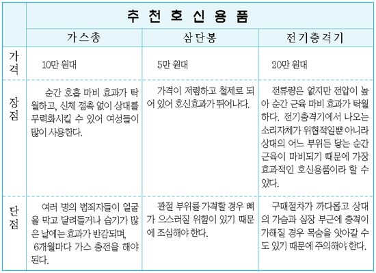 만약 뒤에서 쫓아오는 인기척이 들린다면 도망가지 말고 침착하게 주변가게나 대문이 열려 있는 집에 들어가 도움을 요청하는 것이 바람직하다. 무작정 도망가는 것은 범죄자를 불안하게 만들어 더 큰 피해를 입을 수도 있다.● 이동수단별