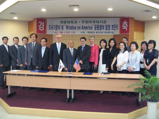 지난 29일, 동산 도서관과 주한미국대사관의 ‘Window On America’ 프로그램 공동참여 협정식이 동산 도서관 7층 영상 세미나실에서 열렸다. 이 프로그램의 일환으로 협정식 전에 미국학과 관련도서 기증식이 있었다.