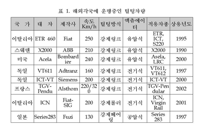 2. 해외 틸팅차량 연구 현황