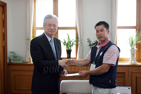 계명대관리팀자원봉사단 장한수회장은 "교내에 버려져 있는 폐지, 깡통, 병, 고철 등을 주워 팔아 성금을 마련했다."며 "적은 금액이지만 학생들을 위한 복지기금으로 쓰였으면 좋겠다."고 밝혔다.
