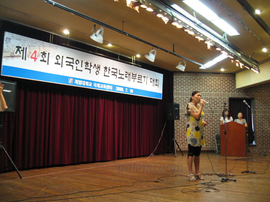 지난 7월 10일, 국제교육센터 한국어학당 주최로 제 4회 외국인학생 한국노래부르기 대회가 2백80여 명이 참가한 가운데 시청각실에서 개최됐다.