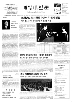 771호 열린편집 시대를 열다1996년 2월 22일자 771호 신문은 90년대 중반까지 이어오던 계명대신문의 편집형에 대폭변화를 주면서 전혀 새로운 편집형을 선보이게 되었다. 기존의 편집이 닫힌 편집이라고 한다면 지면 내에서 선의 사용을 자제하고 여백의 활용을 높여 독자의 시야를 시원하게 열어 가독성을 강화했다. 이 열린 편집은 지금까지 계명대신문의 편집의 기본 틀로서 중요하게 여겨지고 있다.