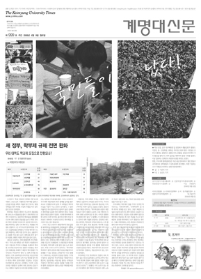 계명대신문 지령 1천호를 맞아 그동안 발행된 신문들을 편집 중심으로 살펴보고자 한다. 그 전에 지령(紙齡)이란 말을 먼저 풀이해보면, 신문의 나이라는 뜻으로 그 신문이 발행되어온 수를 나타낸다. 그리고 이 글에서 지난 1천호에 이르기까지 신문의 면면을 살펴보고 지나온 발자국을 돌아보면서 계명대신문의 과거와 현재와 미래를 조명해볼 수 있기를 바란다.창간호, 국한문 혼용