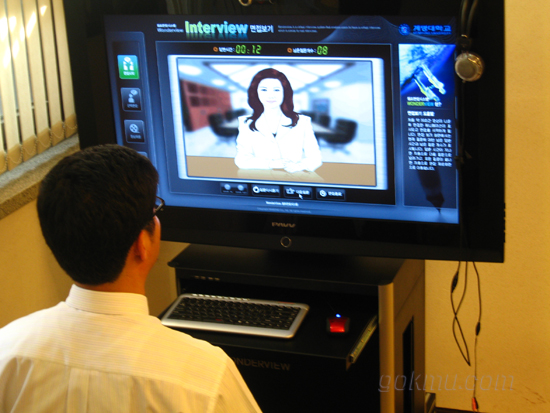 우리대학 진로지원실에서 국내 대학 최초로 도입한 무인자동면접기가 8월부터 정식서비스를 시행했다. 하루 50여 명이 이용가능하며, 한국어는 물론 영어면접까지 가능하다