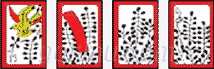 12월 : 비(雨)광의 갓을 쓴 사람은 일본의 3대 서예가 중의 한 사람인 오노도후(小野道風)이며 한국 화투에는 갓 모양만 변형된 것으로 의상은 일본의 것 그대로 남아있다.